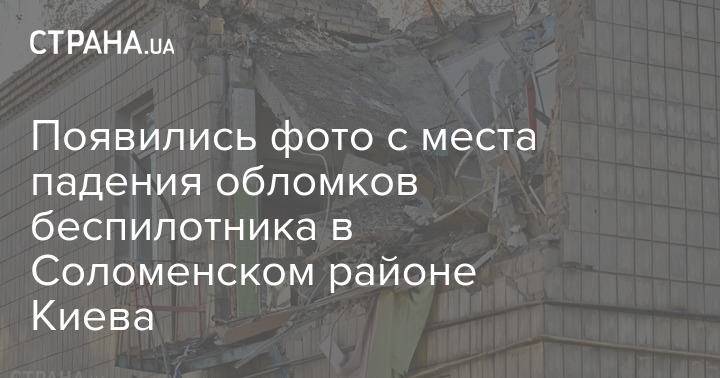 Появились фото и видео с места падения обломков беспилотника в Соломенском районе Киева.
