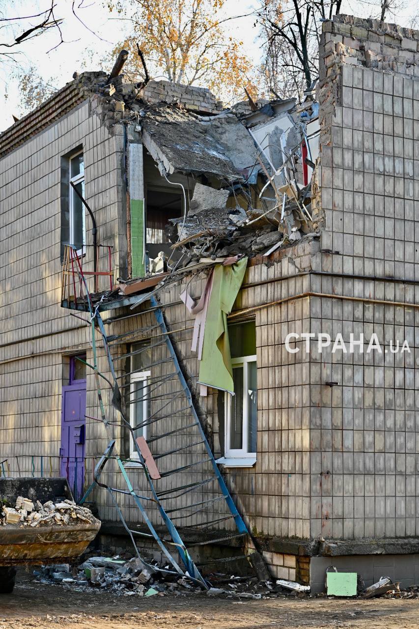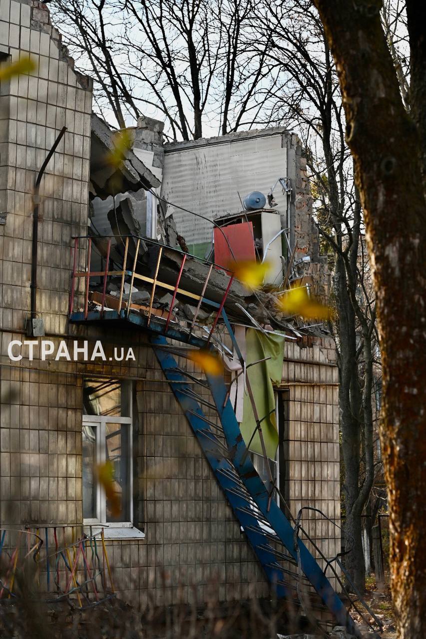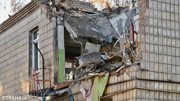 Последствия падения обломков на детский сад в Киеве. Фото: "Страна"