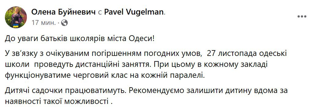 Напомним, что в Киеве 27 ноября также ожидают ухудшение погоды и снежный покров до 20-30 сантиметров. Школы будут работать в смешанном режиме, родители сами будут решать, ставить ли ребенка дома. Детские садики будут работать, как обычно.