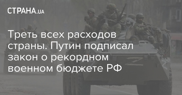 Президент РФ Владимир Путин подписал закон о рекордном военном бюджете России. Траты на армию и ВПК составят впервые с советских времён треть всех расходов страны.