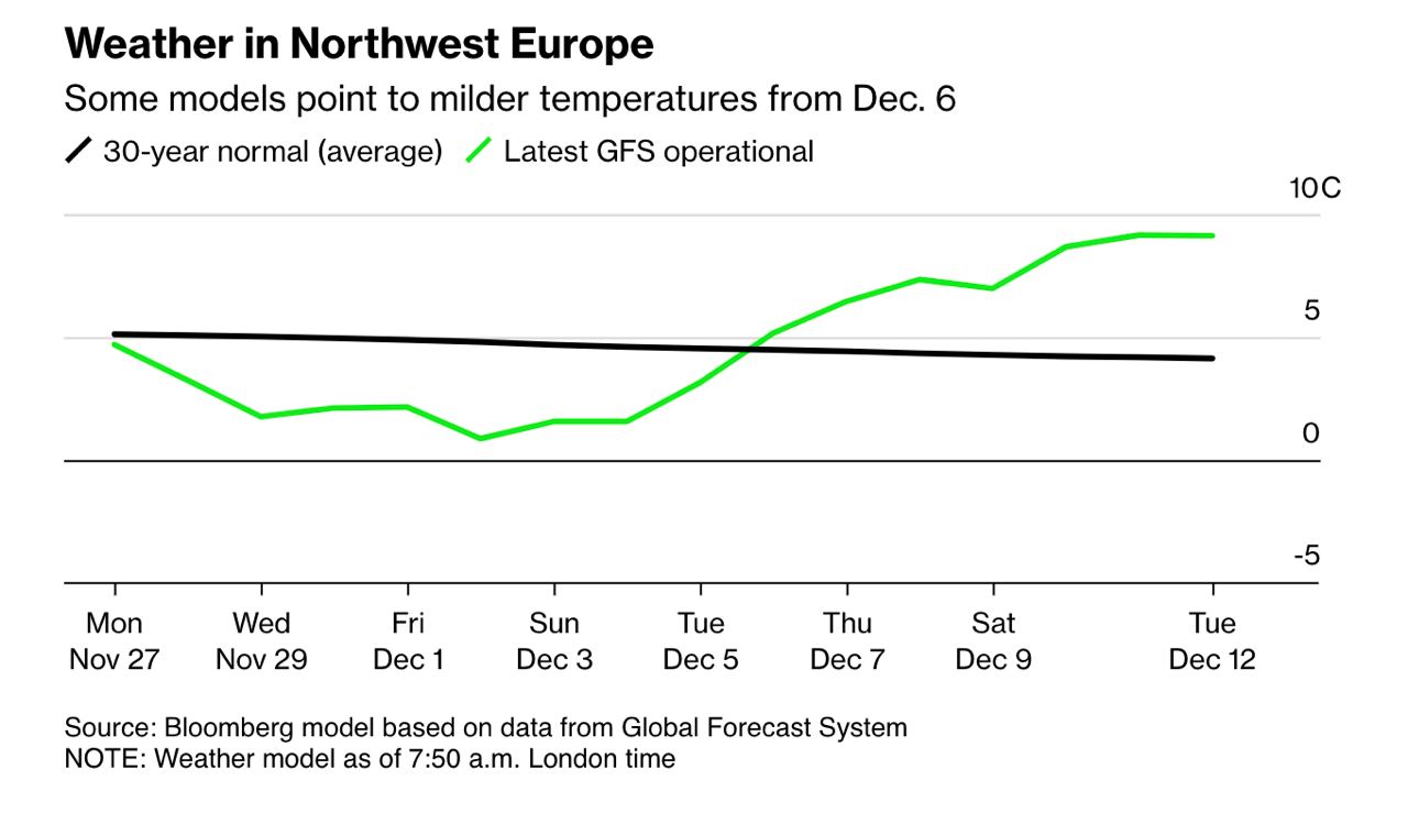 Холод пришел в Европу после задержки начала отопительного сезона, что позволило многим странам накопить рекордные запасы природного газа.
