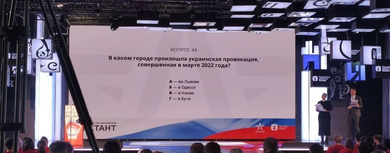 "В каком городе произошла украинская провокация, совершенная в марте 2022 года?" - гласит еще один вопрос. Вероятно, здесь подразумеваются события в Буче Киевской области.