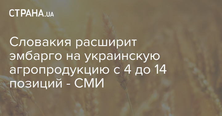 Словакия расширит эмбарго на украинскую агропродукцию с 4 до 14 позиций - СМИ