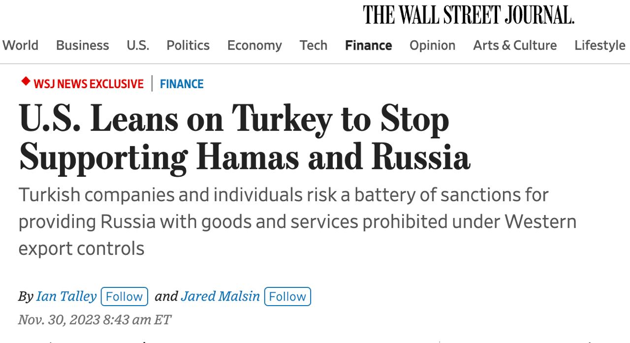 Администрация Байдена призвала Турцию воздержаться от поддержки ХАМАС и РФ - The Wall Street Journal
