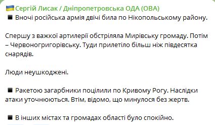 Ночью 1 декабря армия РФ ударила ракетой по Кривому Рогу.