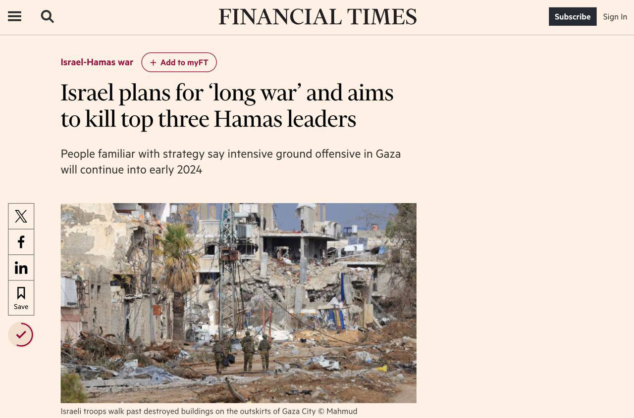 По данным источников газеты в израильском руководстве, наиболее интенсивная фаза боевых действий может пройти в начале 2024 года.