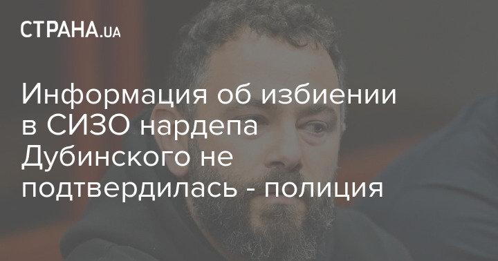 Информация об избиении в СИЗО народного депутата Александра Дубинского не подтвердилась. Об этом сообщает полиция Киева у себя на Facebook.