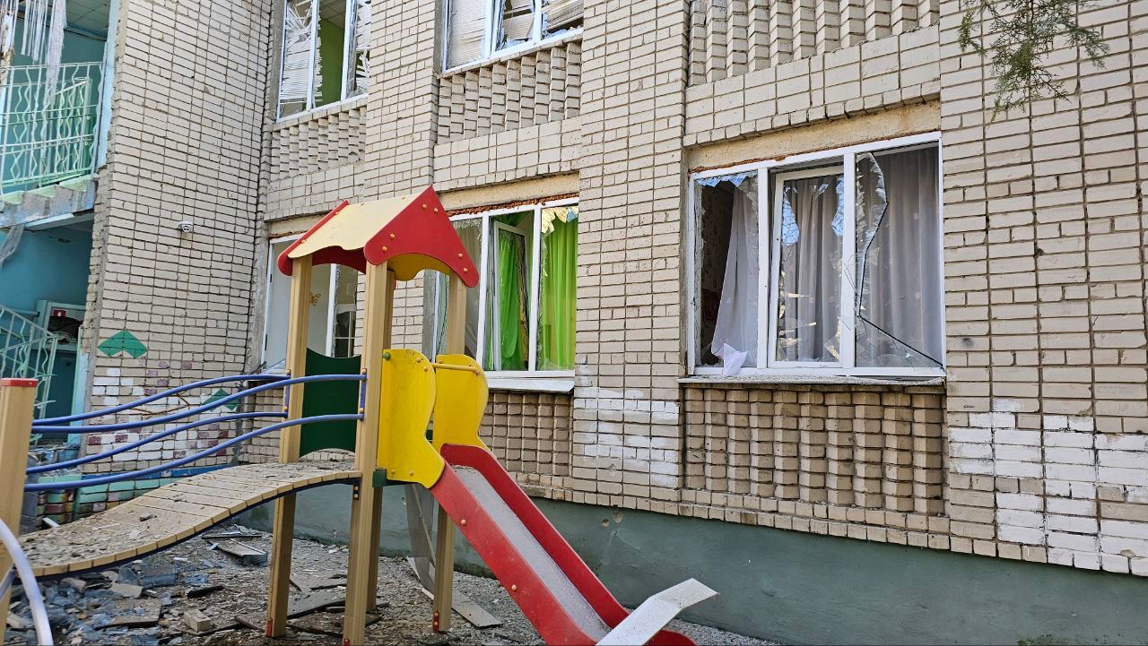 В ОВА публикуют фото последствий удара РФ по детсаду.