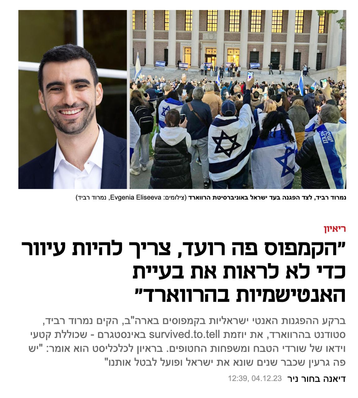 По словам Равида, в Гарварде есть антисемитское ядро, которое "годами нас ненавидело и работает над тем, чтобы нас уничтожить".