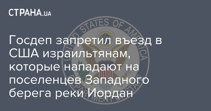 Госдепартамент США ввел санкции - запрет на въезд в Штаты - против израильских поселенцев на Западном берегу реки Иордан, которые нападают на палестинцев.