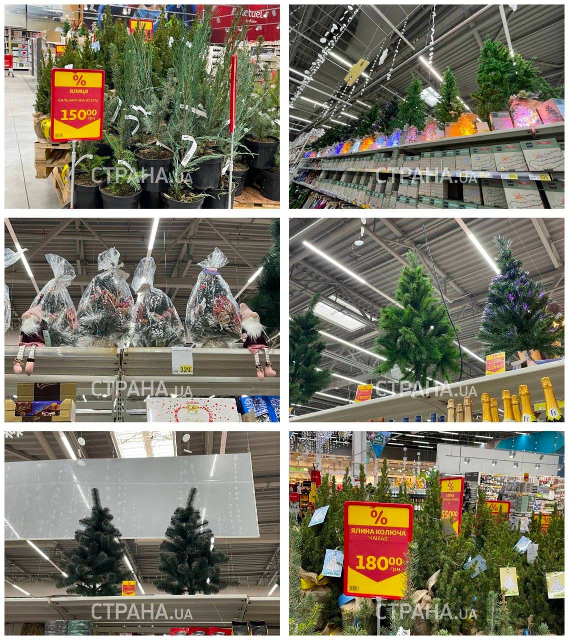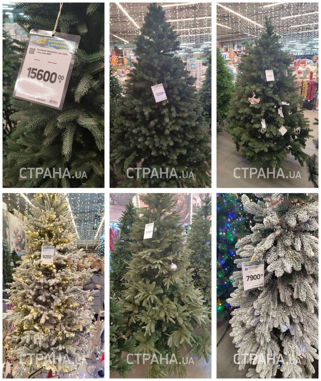 При входе в магазин располагается ряд с "живыми" деревьями. Совсем маленькие елки можно купить почти за 700 грн. А вот деревья высотой больше метра обойдутся дороже — в 1225 грн. Самый бюджетный вариант — сосна, стоимость которой немного превышает 500 грн.