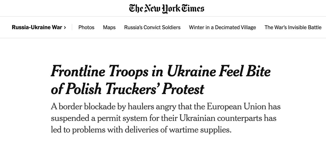Блокада на украинской границе привела к проблемам с поставками военных грузов на передовую - The New York Times