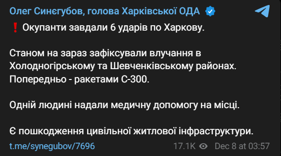 06:00 Россияне этой ночью нанесли 6 ударов по Харькову, сообщает ОВА.