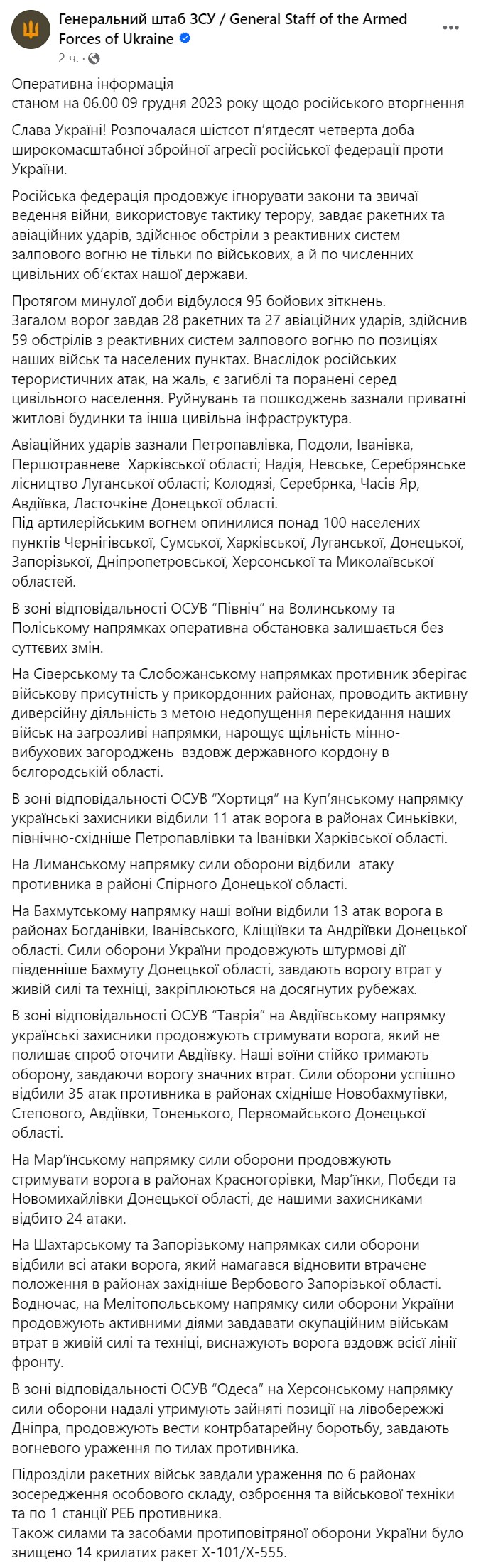 Война в Украине идет уже 654-й день. Мы следим за последними новостями и ключевыми событиями 9 декабря 2023 года в обновляемом онлайне.