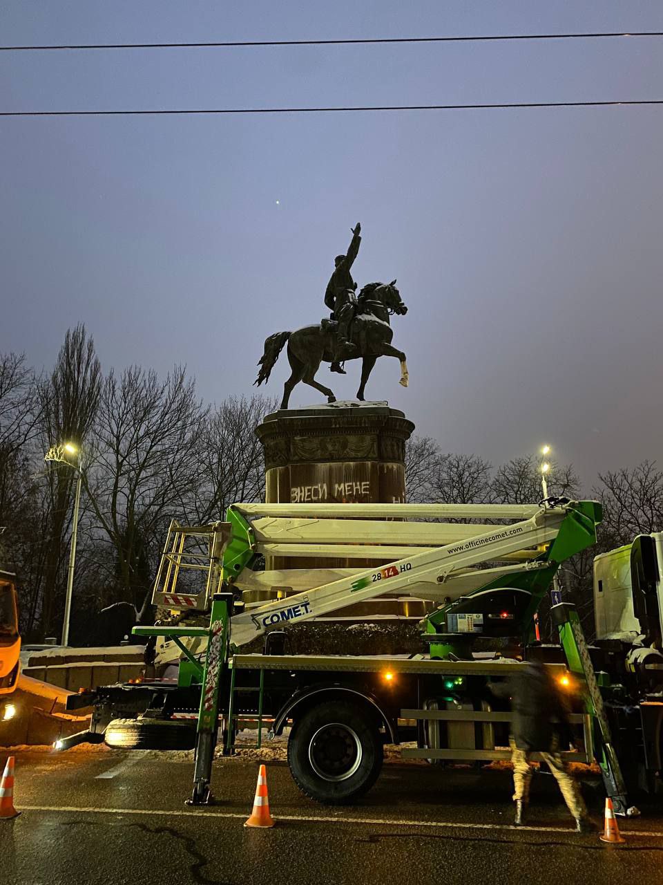 Демонтаж памятника Щорсу в Киеве. Фото: КГГА