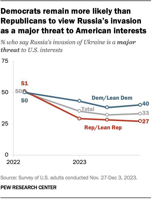 Среди тех, кто поддерживает республиканцев, доля тех, кто требует снизить помощь, выросла с 44% до 48%.
