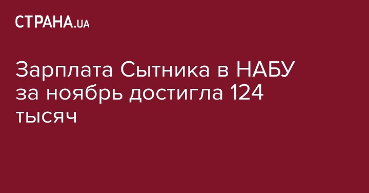 Зарплата директора Национального антикоррупционного бюро Артема Сытника за ноябрь составила 124 173 гривны. Об этом говорится в ответе Бюро на запрос "Украинских новостей".