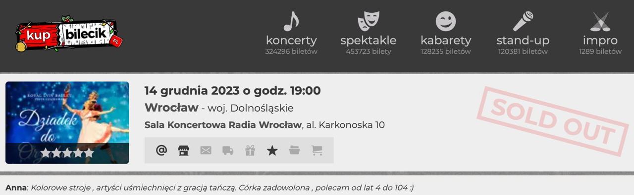 Как сообщают местные сайты для покупки билетов, 14 декабря спектакль будет показан во Вроцлаве. Все билеты уже распроданы.