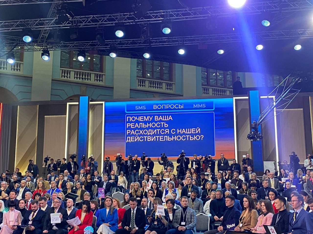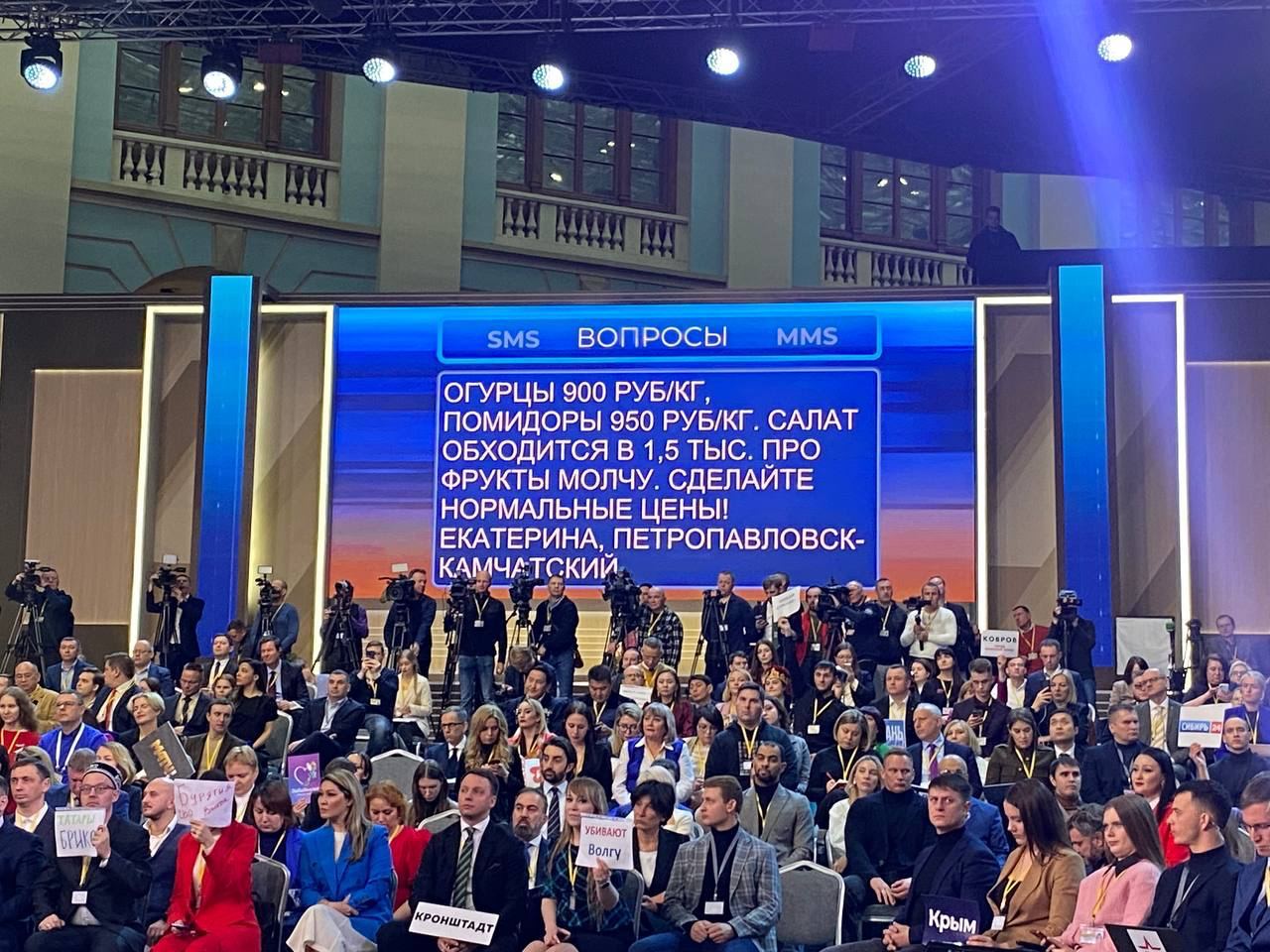 В четверг, 14 декабря, в прямом эфире пресс-конференции президента РФ Владимира Путина, пока ведущие задают общие вопросы, на экран выводят множество "неудобных" вопросов.