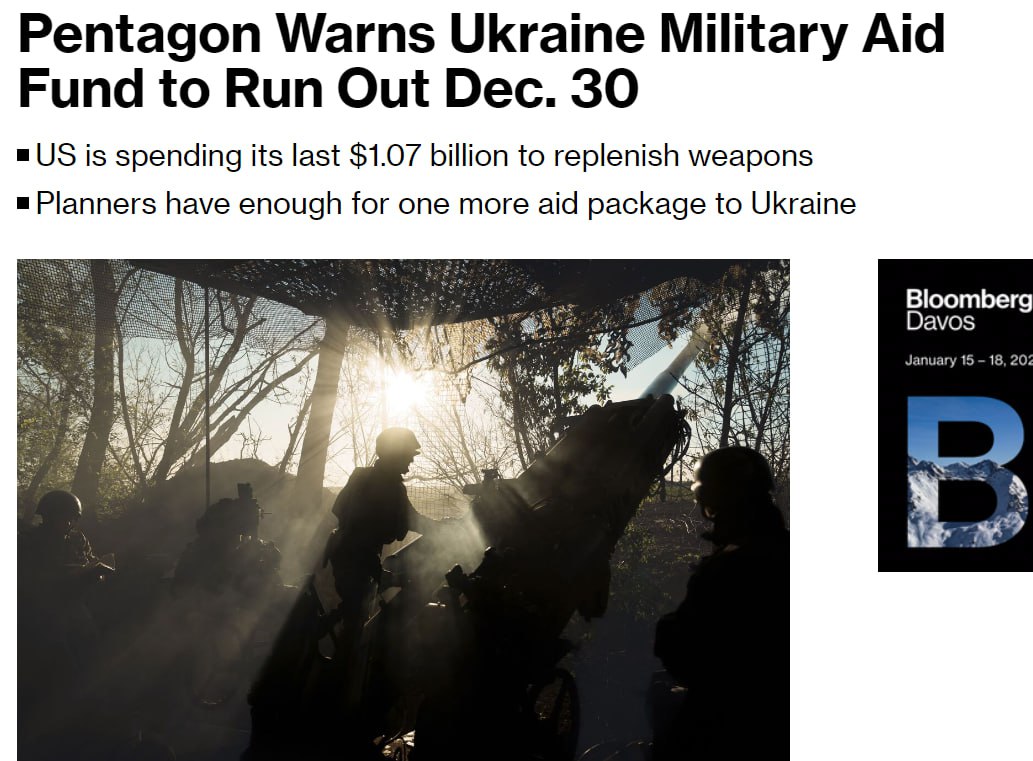 Уже 30 декабря исчерпаются последние 1,07 млрд долларов, которые имеются у Пентагона на поддержку Украины.