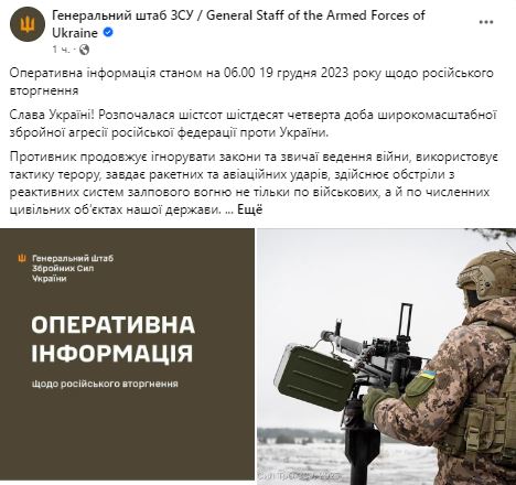 Война в Украине идет уже 663-й день. Мы следим за последними новостями и ключевыми событиями 19 декабря 2023 года в обновляемом онлайне .