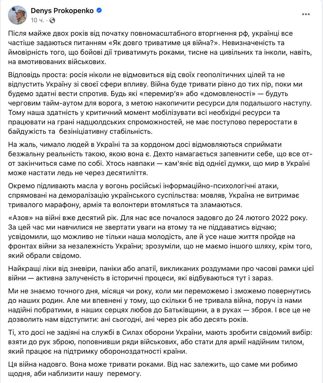 "Эта война надолго. Она может длиться годами" - командир Азова