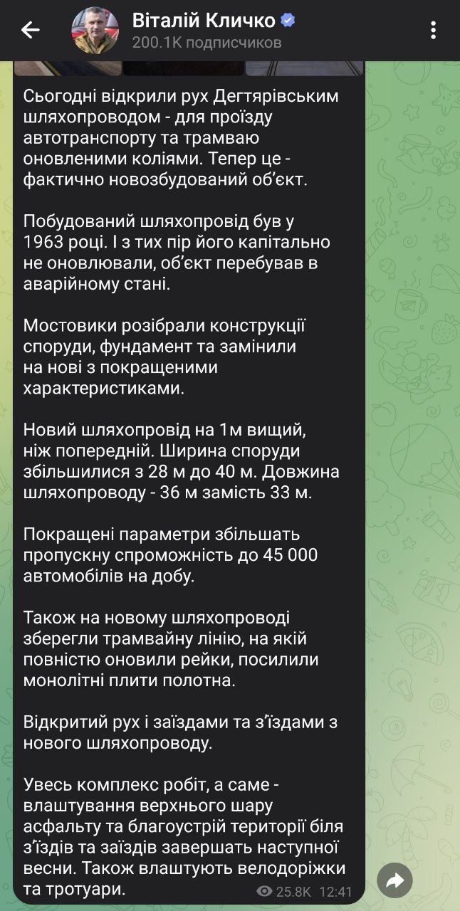 В среду, 20 декабря, в Киеве открыли движение по Дегтяревскому путепроводу.