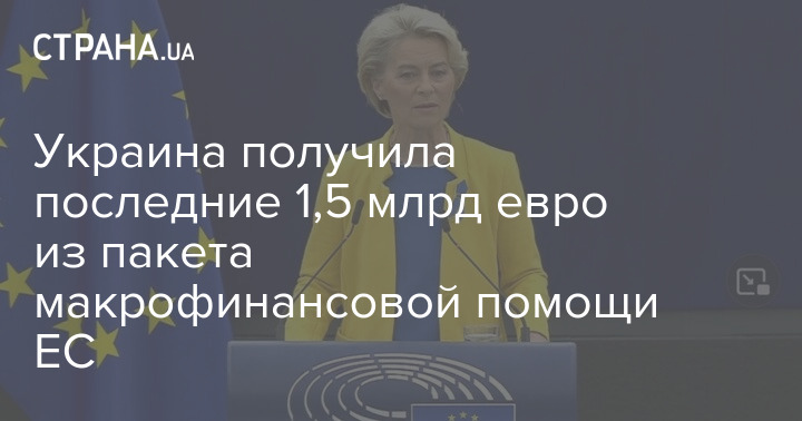 Украина получила последние 1,5 миллиарда евро из пакета макрофинансовой помощи Евросоюза на 18 млрд евро.