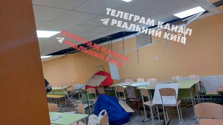 В Киеве во время тревоги в укрытии школы №229 Соломенского района, где находились дети, обвалился потолок.
