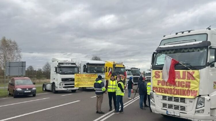 Польские перевозчики продолжают блокировать границу. Скриншот