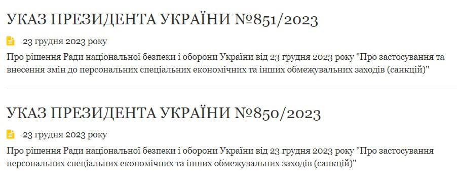 Президент Украины Владимир Зеленский подписал два новых указа №850/2023 и №851/2023 о персональных санкциях. Там перечислены 134 компании и 51 человек.