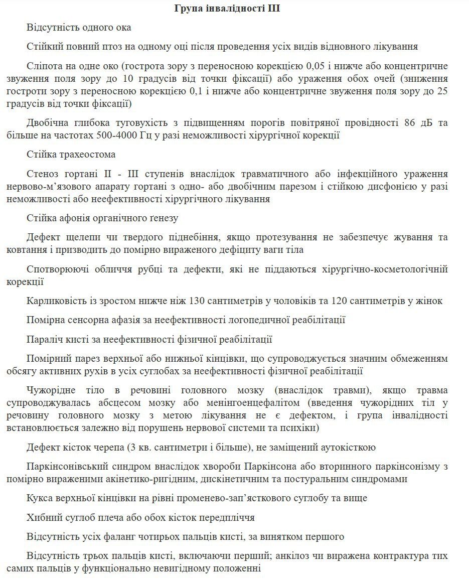 Полный список заболеваний, по которым человеку присваивается третья группа - на скриншотах постановления Кабмина №10 от 2015 года.