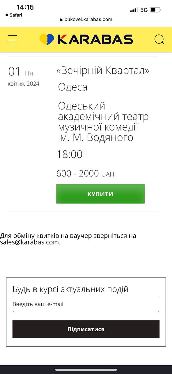 А на 1 апреля у артистов намечен концерт в Одессе.