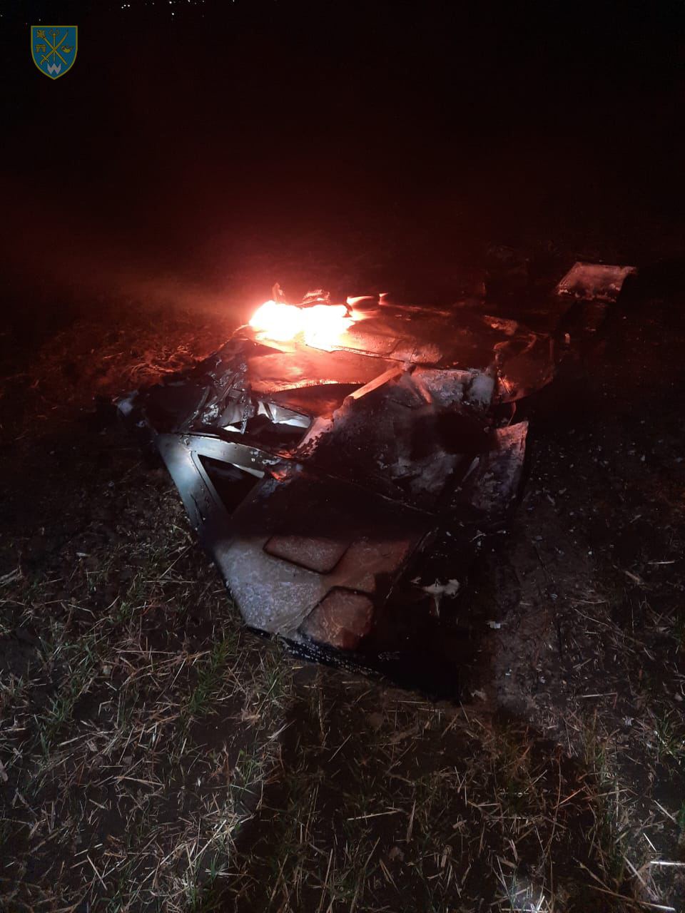 08.44 Силы обороны юга Украины публикуют фото горящих сбитых обломков дрон на Винничине.