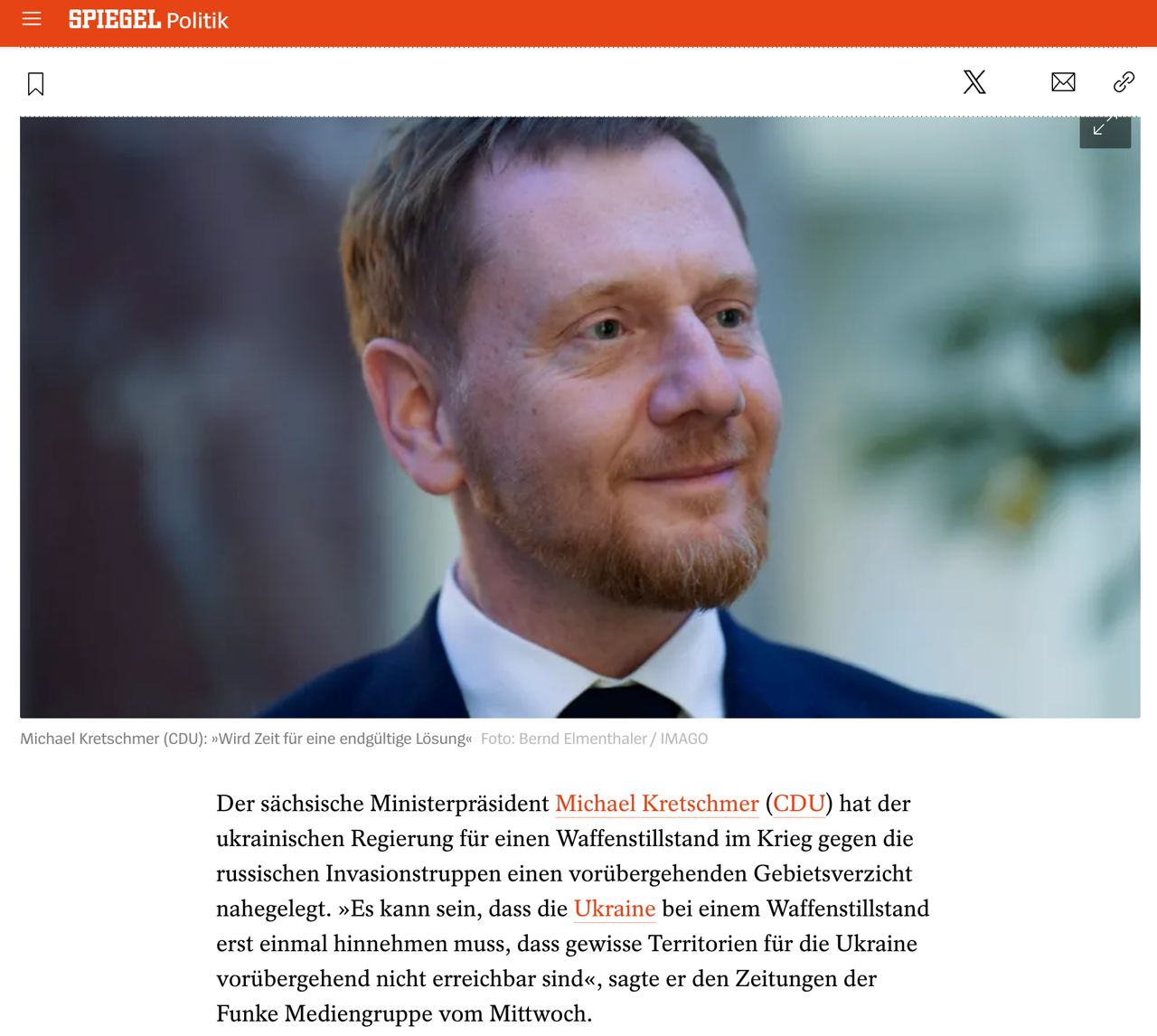 11.14 Премьер немецкой Саксонии Михаэль Кречмер (ХДС) предложил Украине временно отказаться от оккупированной территории ради перемирия.