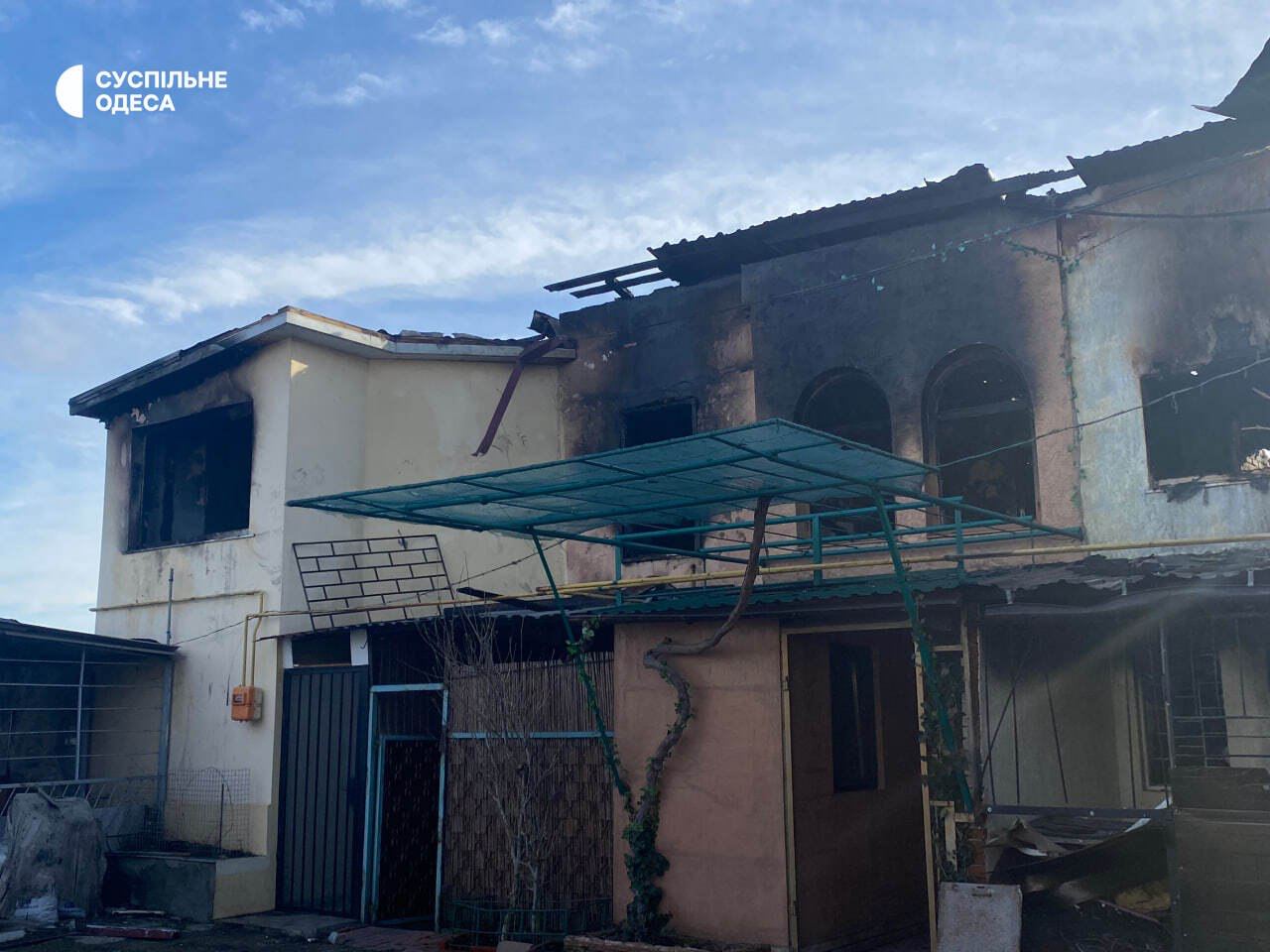 12.55 Дачные домики под Одессой после падения обломков дронов.