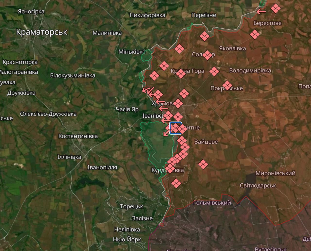 На Лиманском направлении РФ возобновила интенсивное наступление для вытеснения ВСУ из района Серебрянского лесничества и расширения Торского выступа, идет попытка захвата села Терны и выхода к реке Черный Жеребец.