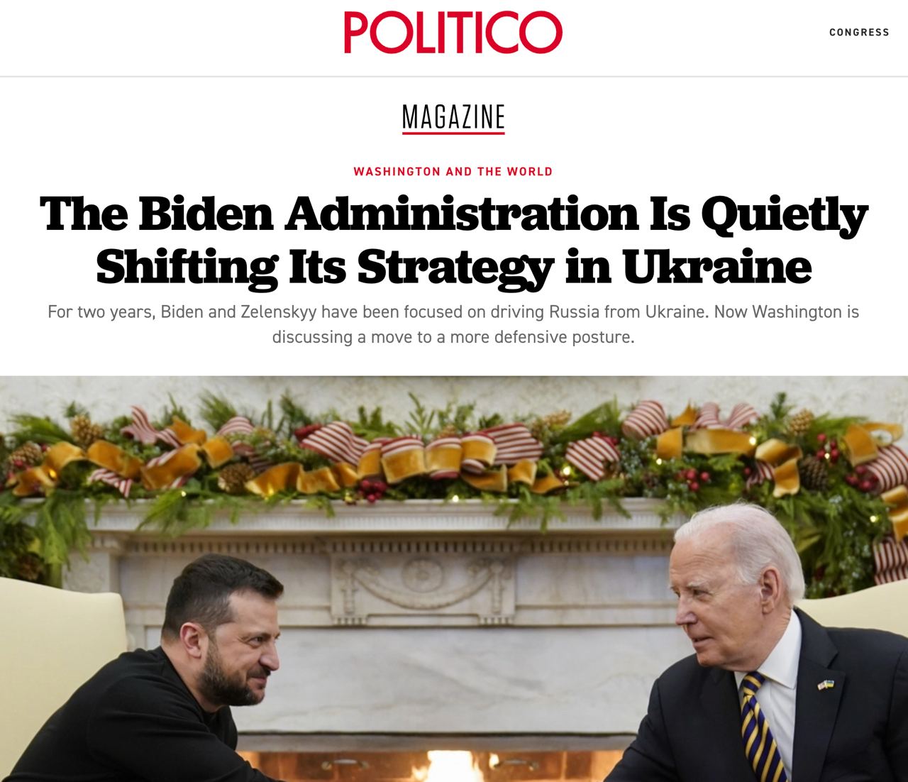 Представитель администрации сообщил журналу Politico Magazine, что большая часть этого стратегического перехода к обороне направлена на укрепление позиции Украины на любых будущих переговорах.
