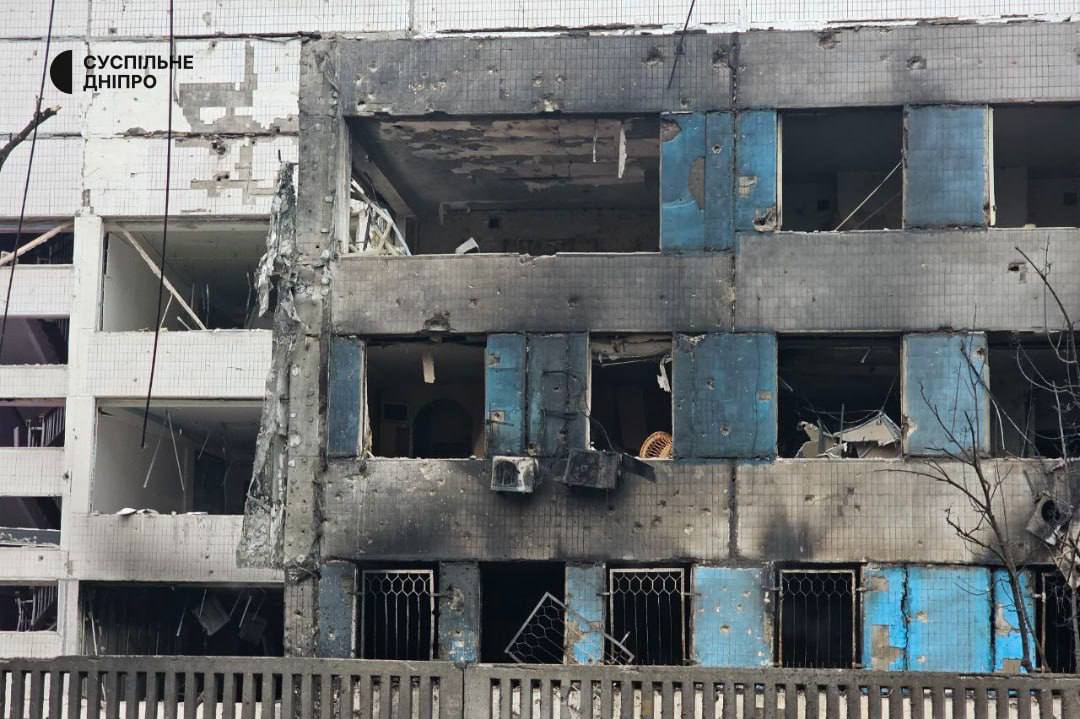 В Днепропетровской ОВА сообщают, что кроме удара по по торговому центру, по удар попали частный дом, шестиэтажное здание и роддом.