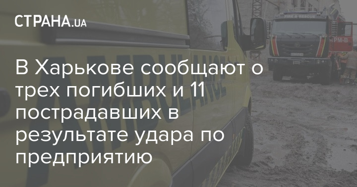 Днем 29 декабря в Харькове сообщают уже о трех погибших и 11 пострадавших в результате прилета по гражданскому предприятию.