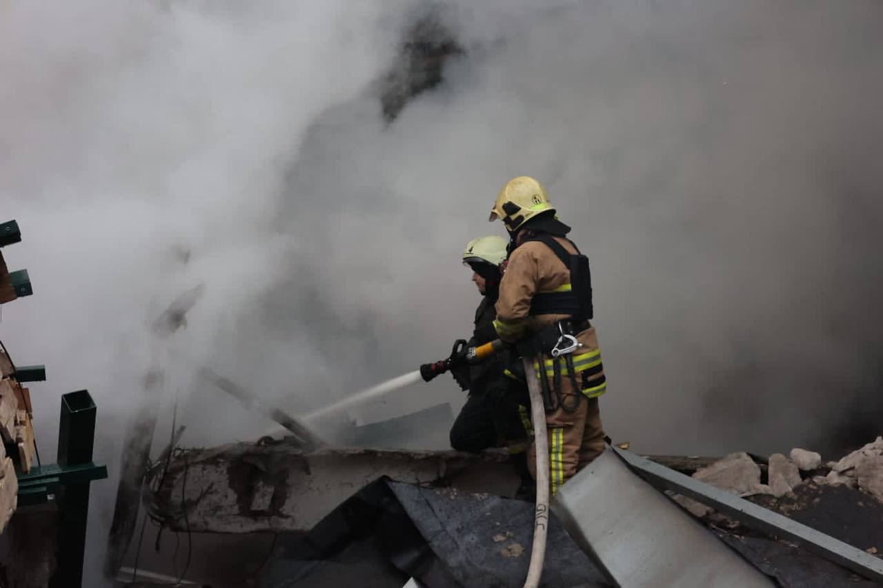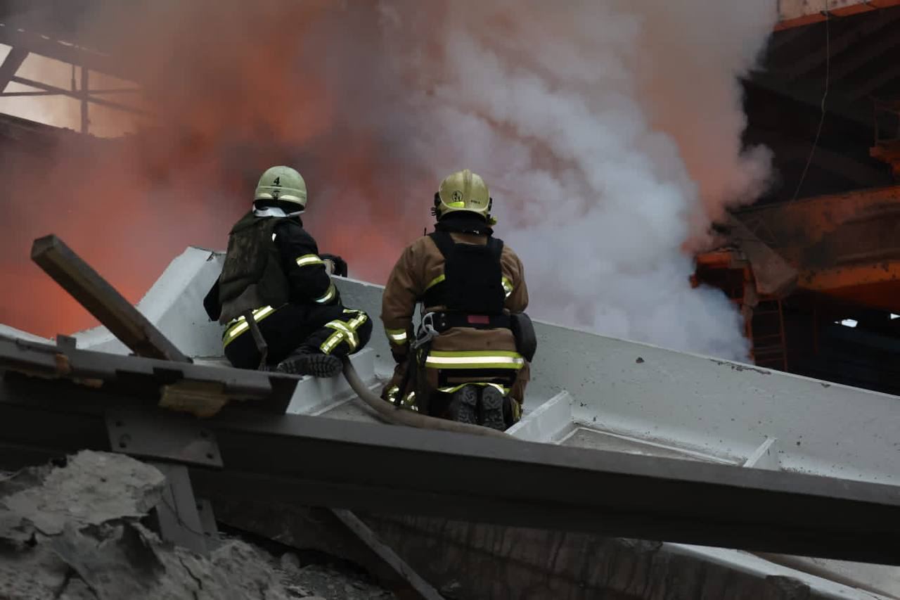 Пожар на месте ракетного удара еще тушат.