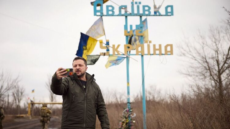 Глава Офиса президента Андрей Ермак опубликовал селфи президента Украины Владимира Зеленского на фоне въезда в Авдеевку.