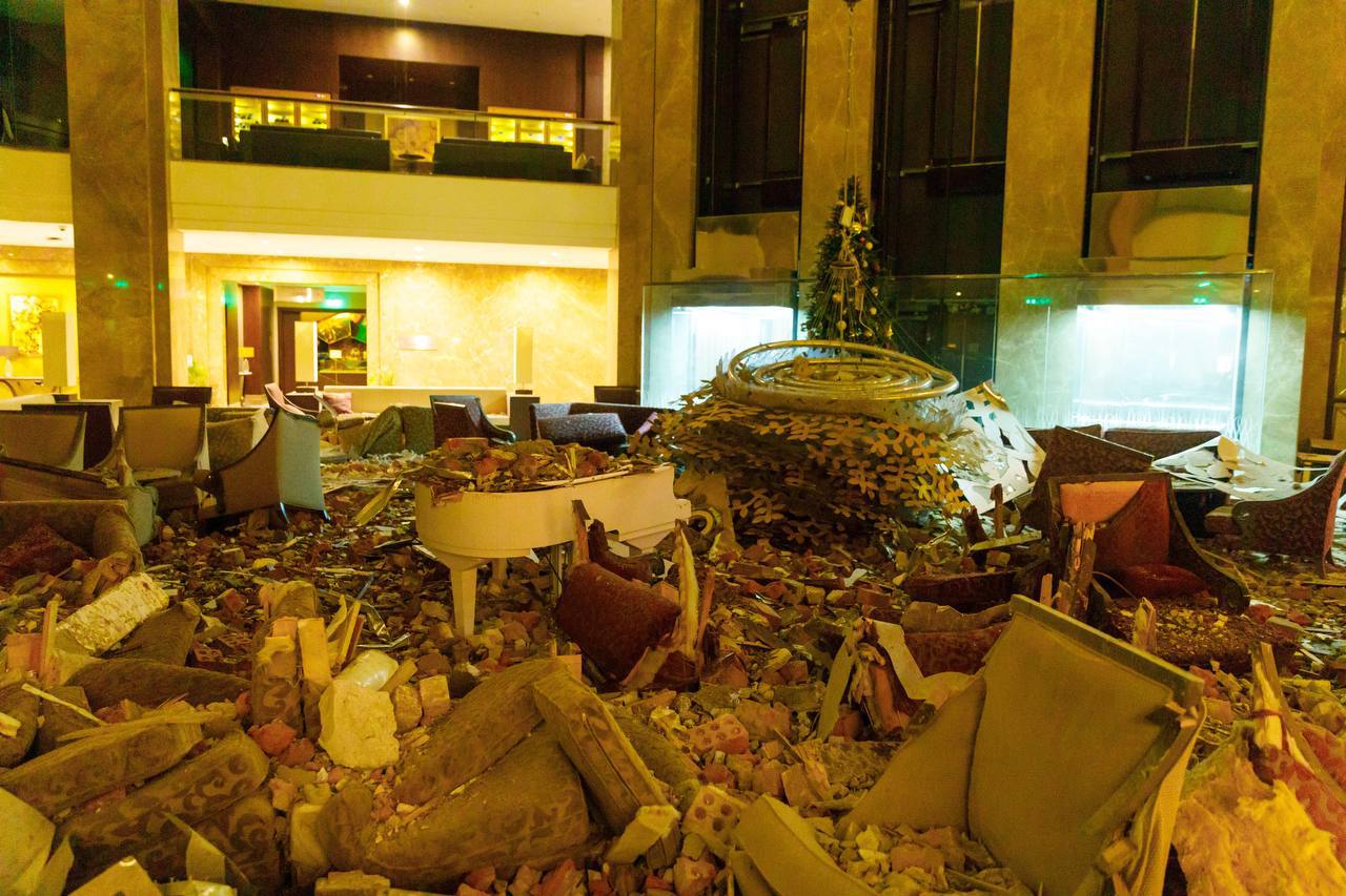 Тем временем в сети появились кадры изнутри отеля "Харьков Палас", куда вчера попала российская ракета.