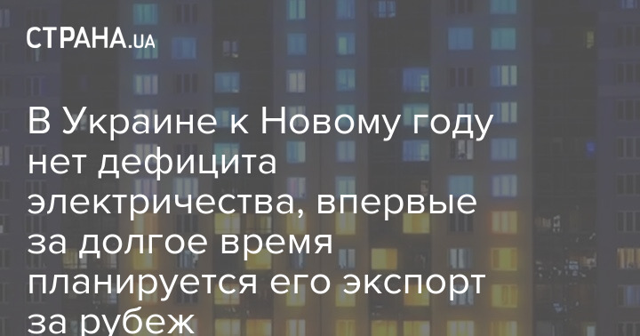 В Украине к Новому году нет дефицита электричества, впервые за долгое время планируется его экспорт за рубеж
