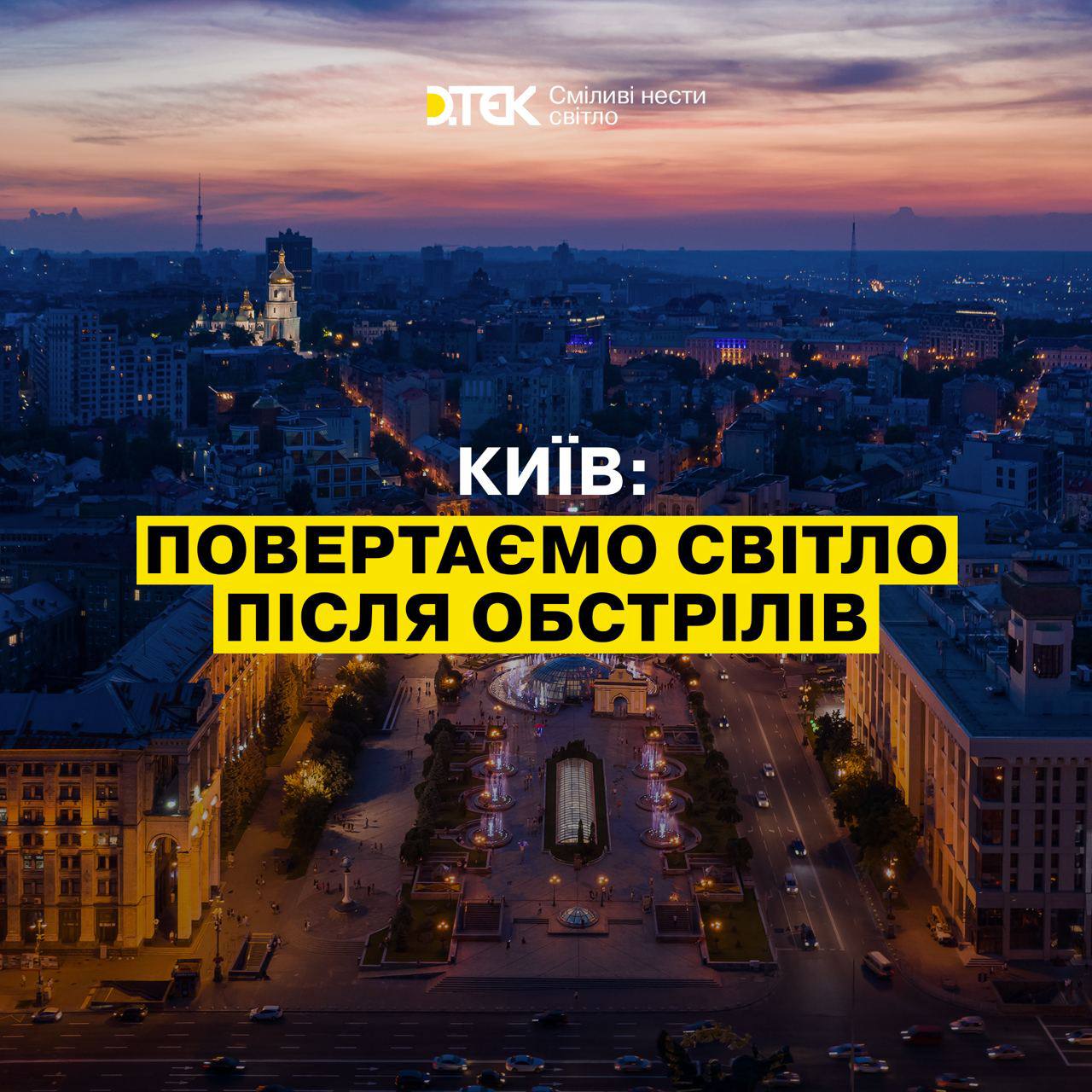 "Без света остается Куреневка, часть Оболонского и Святошинского района. Сейчас специалисты делают переподключение, чтобы заживить всех оставшихся без электроснабжения киевлян из-за обстрелов", - написал ДТЭК.