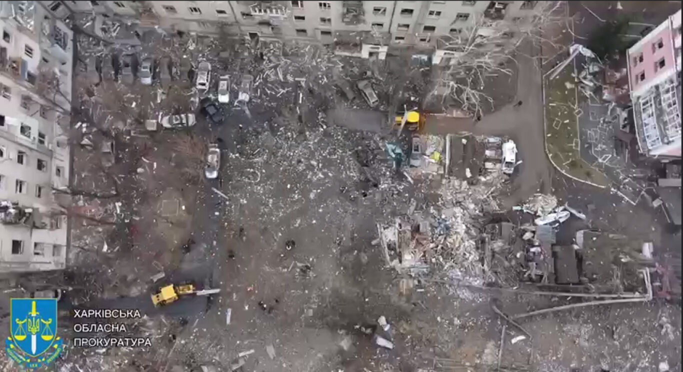 Во вторник, 2 января, российские военные ударили по центральной части города Харьков, в частности удар был по Шевченковскому району. Прокуратура показала последствия прилета.