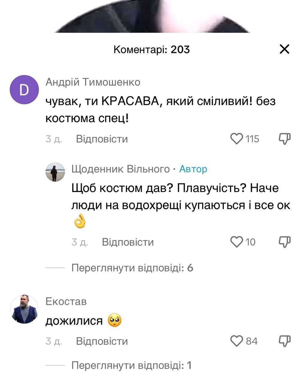 Стоя еще в мокрой после заплыва одежде, парень говорит, что ему "п@зда как холодно", но зато "даже воздух другой, уверенность другая", а "та х@йня позади, которая меня ждала". По его словам, с пересечением границы "были нюансы", но в целом все "прошло легче, чем я думал".