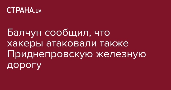 Балчун сообщил, что хакеры атаковали также Приднепровскую железную дорогу