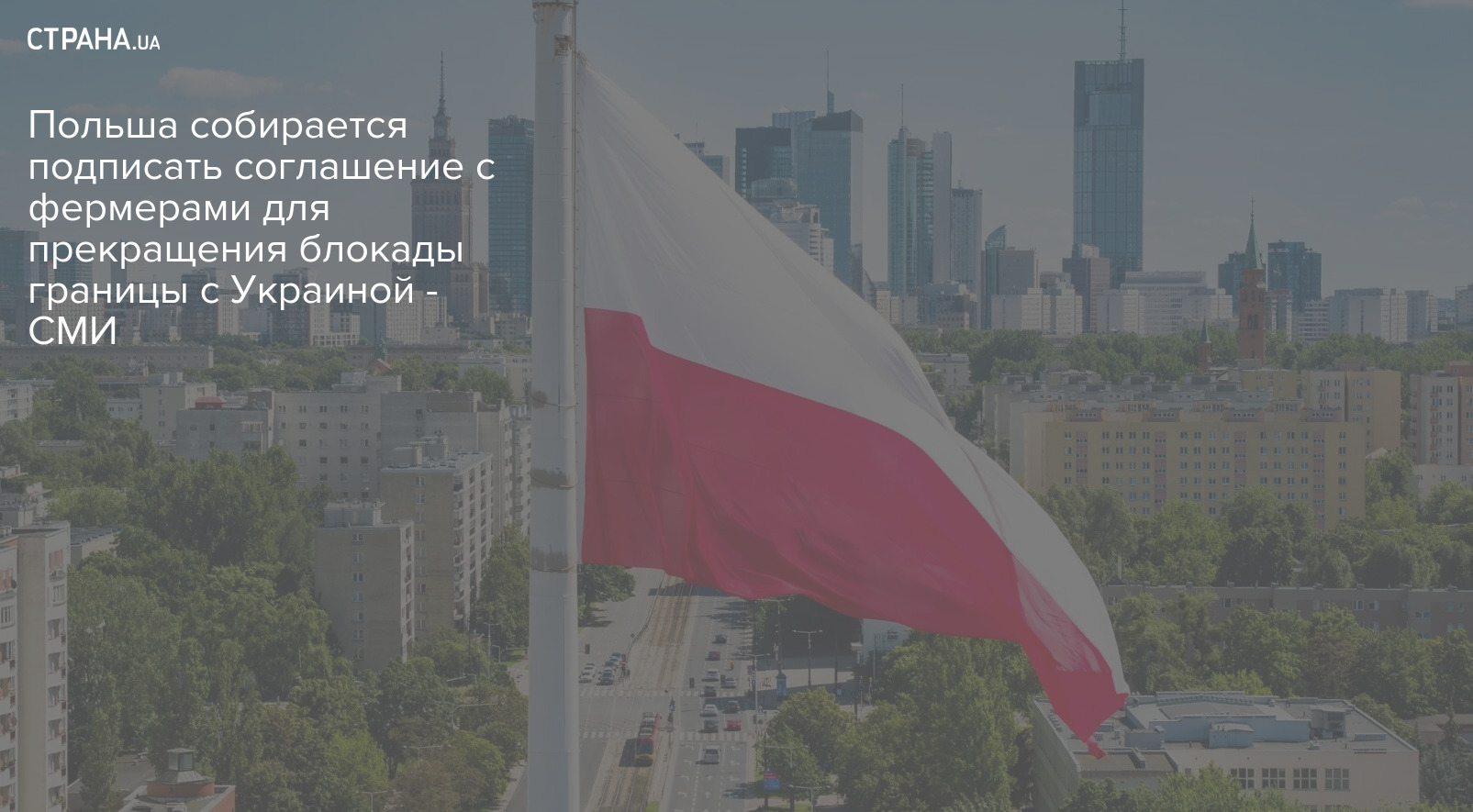 Польша собирается подписать соглашение с фермерами для прекращения блокады границы с Украиной - СМИ
