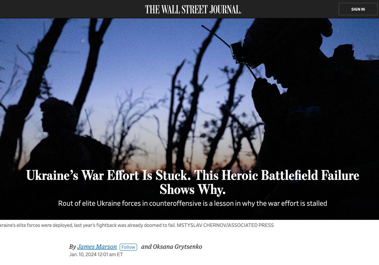 13.42 "Разгром элитных украинских сил в контрнаступлении — урок того, почему военные усилия застопорились", - пишет The Wall Street Journal.